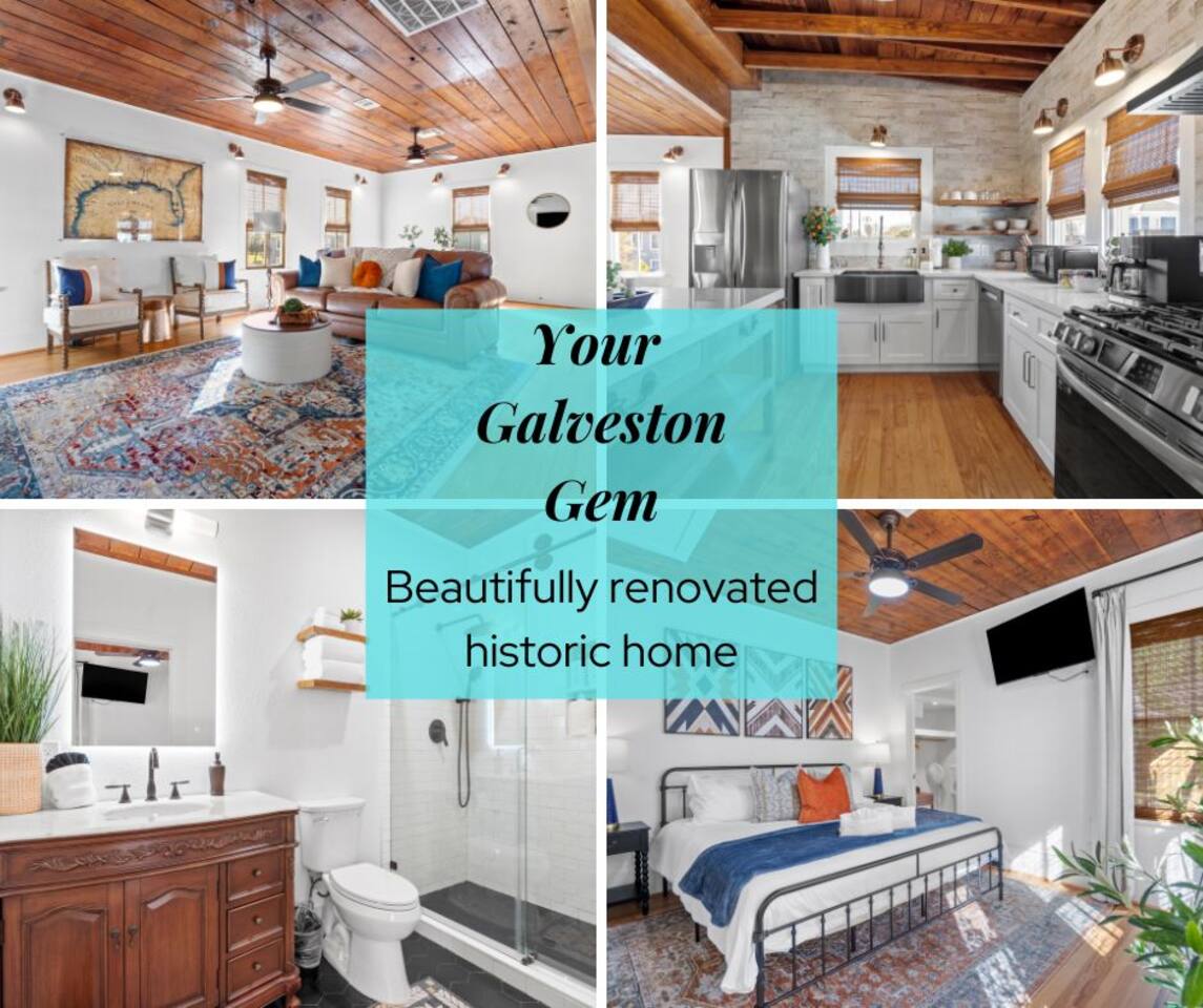 Prime Location! Beautifully renovated and thoughtfully designed beach retreat, blending modern luxury with extra amenities. Walk to the famous Strand for dining, shopping, art, and nightlife. Just steps from Stewart & Porretto beaches, cruises, and UTMB. Minutes by car to Pleasure Pier, Moody Gardens, Schlitterbahn, and the Seawall. Historic charm meets comfort with 2 bedrooms, 2 bathrooms and a queen sofa bed. King bed in the primary suite! Ideal for families, couples, or solo adventurers!